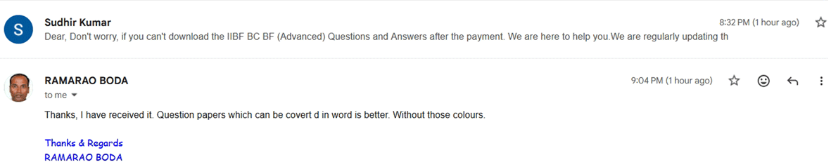 I was unsure how to begin my preparation for the IIBF BC Advanced exam until I downloaded the PDF. I gave the exam just after 3 weeks of focused study and cleared it with ease. Now I am IIBF Certified.